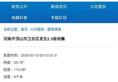 ?平頂山市衛東區發生2.3級地震 震源深度9千米,?平頂山市衛東區發生,2.3級地震 震源深,度9千米...